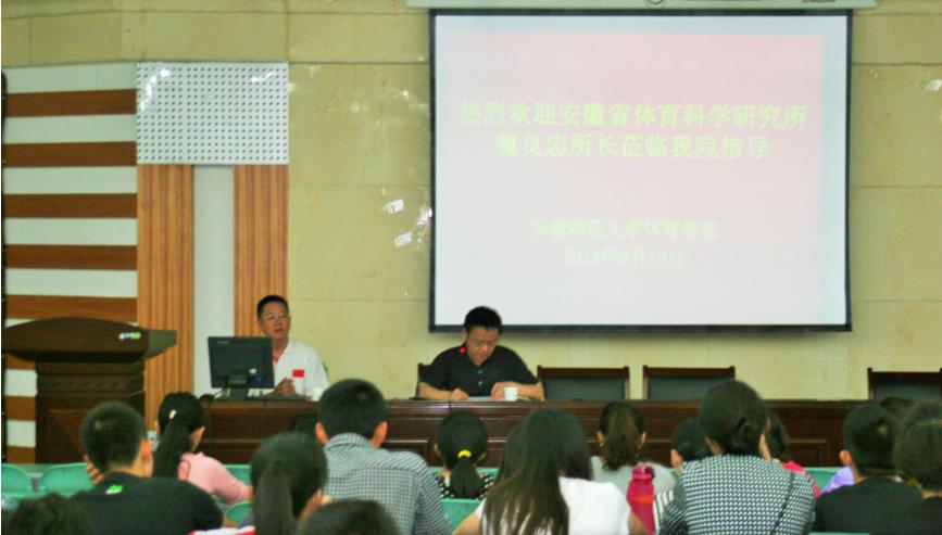 本网讯(Bsports必一体育官网 刘应)2014年9月19日下午,安徽省体育科学研究所魏良忠所长应邀为公司研究生作了一场“科技在体育中的运用”的学术报告。报告由Bsports必一体育官网副经理席玉宝教授主持。